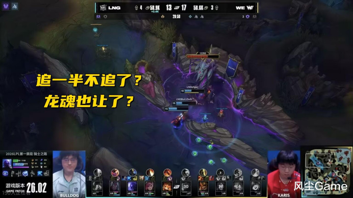 第四把的时刻,打野又犯病了,前中期打得还行,固然送得多了点,但给队列拿到了龙魂,效劳后的决胜团,打正面就能赢的情况下,Croco又去绕后了,切对面AD没切掉被反秒,一波就送输了比赛,遮住ID的话,这场BO5看完,不知说念的还以为,LNG打野是Kanavi呢,各式发狂犯病。