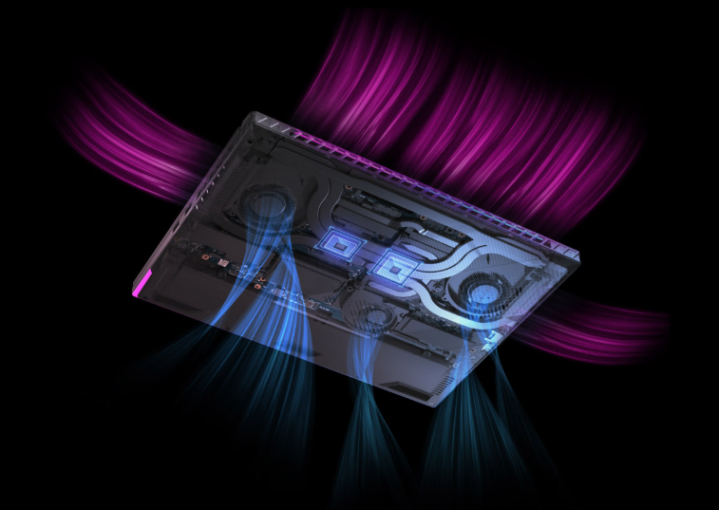 散热上,ROG魔霸新锐 锐龙版禁受冰川散热架构3.0,GPU涂抹2代暴力熊液金,配合3电扇内吹7热管想象,高效导出机身里面废热,即便长时代满负载开动,也能保捏机身低温,性能不减的硬核实力。