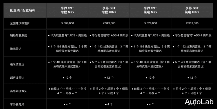 全系标配激光雷达、4D毫米波雷达、11个高清摄像头及12个超声波雷达,实现全方位感知;