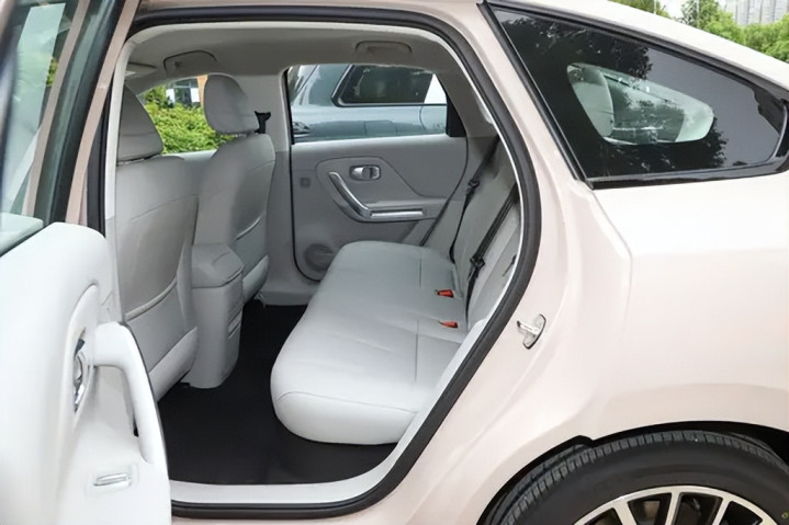后排空间在同级车型中表现稳定,腿部空间余量充足,即便是身高偏高的乘客也不会感到局促。由于地台采用纯平设计,中间乘客的脚部空间得到保障,整体乘坐舒适性优于传统燃油轿车。后排座椅靠背角度较为合理,坐垫长度对大腿的承托也比较到位,更符合家庭出行场景下的乘坐需求。车门开启角度较大,对于老人和儿童上下车较为友好。