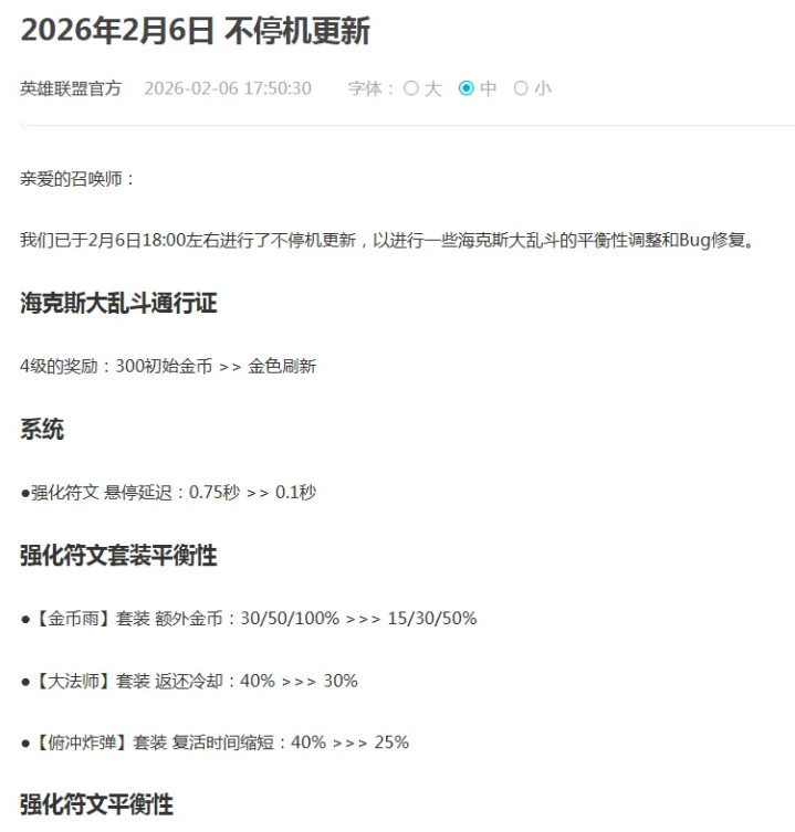 昨年10月更新的海克斯大乱斗,不错说是面前《勇士定约》里最热点的玩法。想必好多老玩家都和我一样,很难假想会在责任日晚上看到勇士定约客户端需要列队的盛况,以致列队东谈主数多达10万,列队时长十几分钟。官方不仅为列队情况严重的区服进行扩容,更在2026年春节时间,对这一玩法进行了大型更新。在版块更新后由于经济失衡、系统相对复杂导致游戏体验南北极化严重,激勉了玩家大批差评,官方进犯通过热补丁修正了多处问题。