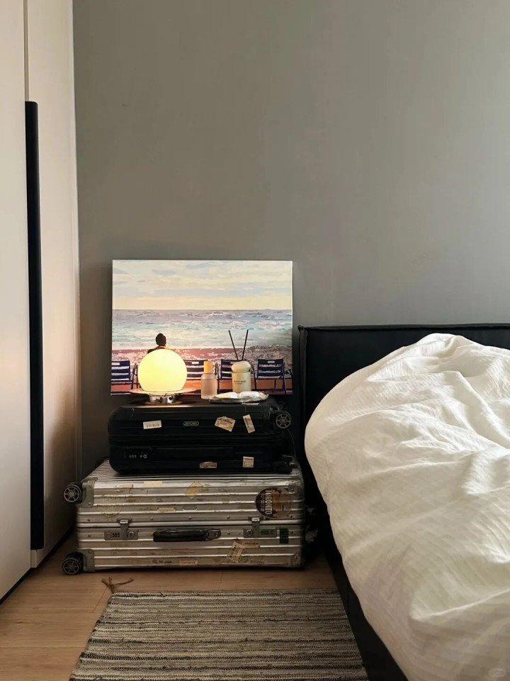 不如把家里的行李箱利用起来,秒变实用床头柜,想要用行李箱的那一天,清一清又可以一推就走,又省一笔钱!