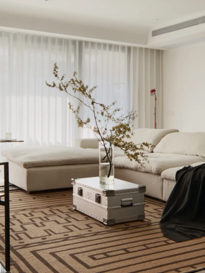 客厅觉得茶几没有必要买,但有的时候也确实需要茶几放点东西,最终选择把行李箱当移动茶几。
