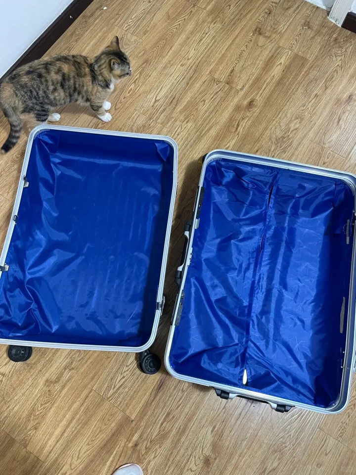 每次出差,都要和崽子斗智斗勇,只要行李箱拉开,就一溜烟跑进去,赖在里面怎么都不愿意出来。于是想着干脆改造一个行李箱当猫窝,没想到太合适了!
